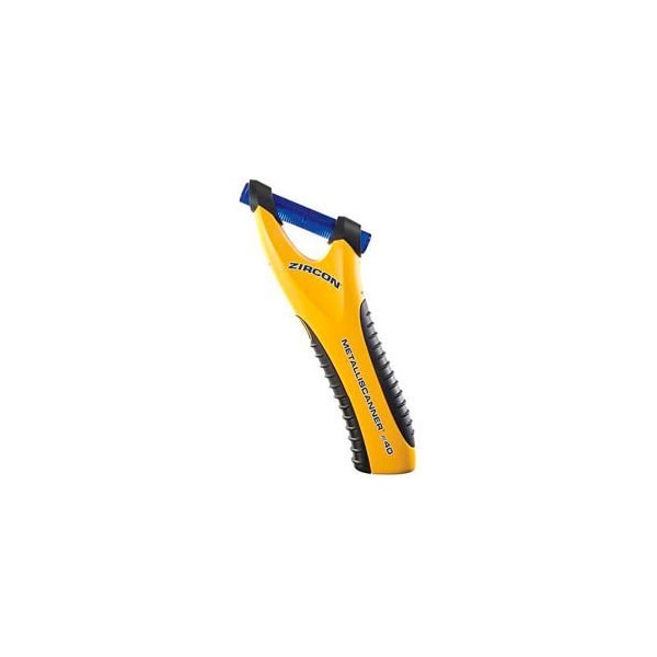 ZIRCON MULTISCANNER® M40 HANDHELD ELECTRONIC METAL DETECTOR METALLISCANNER® M40 QUICKLY AND EASILY DETECTS METAL IN WOOD, DRYWALL, PANELING, TILE, STUCCO, PLASTER, CONCRETE, AND OTHER NON-METALLIC SURFACES. IT LOCATES FERROUS (MAGNETIC) METAL UP TO 4 INCHES (10 CM) DEEP AND NON-FERROUS (NON-MAGNETIC) METAL UP TO 2 INCHES (5 CM) DEEP.THE M40 SOLVES THE PROBLEM OF FINDING STUDS IN LATH AND PLASTER WALLS, THAT DO NOT CONTAIN METAL MESH, BY FINDING THE PATTERN OF NAILS THAT ATTACH THE WOOD LATH TO THE STUDS. METALLISCANNER® M40 FINDS PLUMBING, DUCTWORK, REBAR, NAILS, AND SCREWS IN YOUR WALLS, FLOORS, AND CEILINGS, AND IS GREAT FOR SCANNING RECLAIMED LUMBER FOR HIDDEN METAL. THE M40 FEATURES TWO SCANNING POSITIONS, EACH WITH A PROGRESSIVE LED DISPLAY. AS IT APPROACHES A METAL OBJECT, THE RED LEDS PROGRESSIVELY LIGHT FROM THE BOTTOM UP. THE TOP LIGHTED BLUE COIL AND AN AUDIO TONE INDICATE WHEN A METAL TARGET IS LOCATED. FEATURES: