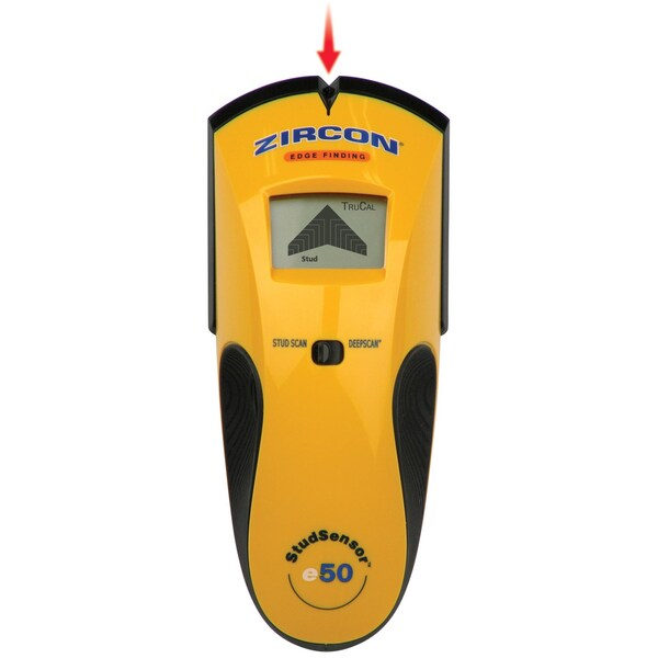 The Stud sensor E50 quickly and easily locates the edges of wood and metal studs and joists behind walls, floors and ceilings. Its easy-to-read display screen indicates stud edges, the patented spotlite pointer shines a beam of light on the wall to identify the target and wire warning detection indicates the presence of live AC voltage. Its new patent-pending pinch grip and contoured shape provide an easy, secure hold in either hand, at any angle.