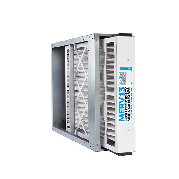 20" X 20" X 4" Merv 13 APRILAIRE Model 313 Gasketed Replacement Filter. Our Filter Gasket fits the April Aire cabinets slot, so the filter slides into place and prevents dirty air bypass found in other models. The filter is already in frame making no assembly required. Much cleaner and easier to install and replace! Gasket measures 3/8" on top and bottom. This deep pleated Media Air Cleaner delivers MERV 13 rated filter efficiency, delivers the lowest pressure resistance/pressure drop, highest dust holding capacity, and longest service life, which provides cleaner air to breathe and improved HVAC system efficiency via cleaner components. This filter is constructed with a synthetic media that delivers high filtering efficiency. MERV 13 rated filters removes 85% particle size ranges from 1 to 3 microns in size (which includes most viruses, COVID, bacteria, flu, allergens, smoke, and dust) from the breathing air per ASHRAE 52.2 test results. Filter lasts 9 to 12 months. Actual Filter Size: 18.375" x 19.125" x 3.75"