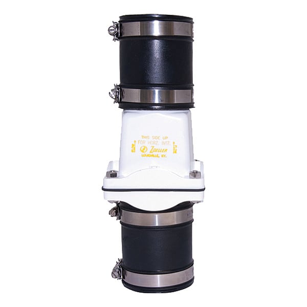 Item - Check Valves Check Valve, Flow Design Single, Mechanism and Body Design Inline Swing, Body Material - Valves PVC, Pipe or Tube Size 2 in, Connection Type Clamp x Clamp, Mounting Orientation Horizontal, Vertical, Seal Material Neoprene, Max. Temp. - Valves 130 Degrees F, Max. Water Pressure - Valves 4.30 psi @ 130 Degrees F, Max. Steam Pressure - Valves Not Rated, Seat Material PVC, Full Flow - Valves Yes, Application - Valves Pumps, Standards BOCA (P.604.2)