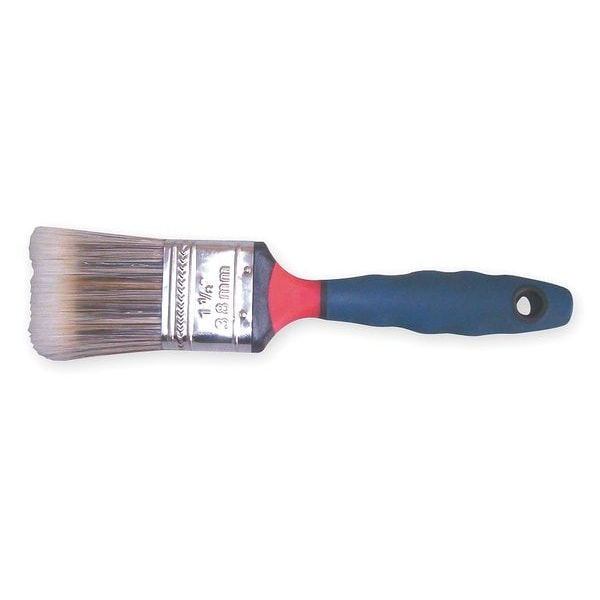 Paint Brush, Brush Style Flat Sash, Filament Type Synthetic, Filament Material Synthetic, Brush Size 1 1/2 in, Bristle Thickness 3/4 in, Bristle Length 2 1/2 in, Bristle Stiffness Firm, Handle Type Flat, Basic Handle Material Rubber, For Paint or Coating Type All Paints and Coatings, Surface Material Concrete, Metal, Wood, For Paint Base Type Oil, Water, Surface Texture Rough, Smooth, Application Walls, Bristle Color Black/Tan, Bristle Width 1 1/2 in, Brush Length 2 1/2 in