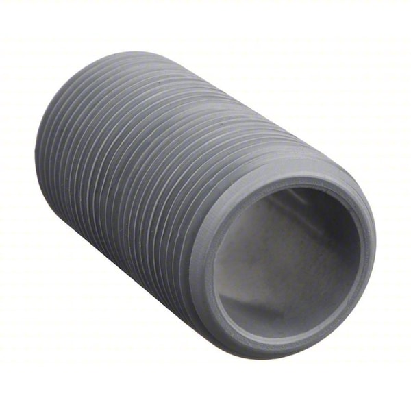Pipe Nipple, Application Acids, Chemicals, Non-Potable Water, Potable Water, Color Gray, Fitting Compatibility Schedule 80, Gravity Flow Pressure, Material CPVC, Material Trade Name ChlorFIT, Maximum Operating Pressure 235 psi, Maximum Operating Temperature 200 Degrees F, Minimum Operating Temperature 32 Degrees F, Nominal Pipe Size 1 1/2 in, Outside Diameter 1 29/32 in, Overall Length 1 3/4 in, Resistance Properties Chemical-Resistant, Corrosion-Resistant, Schedule Schedule 80
