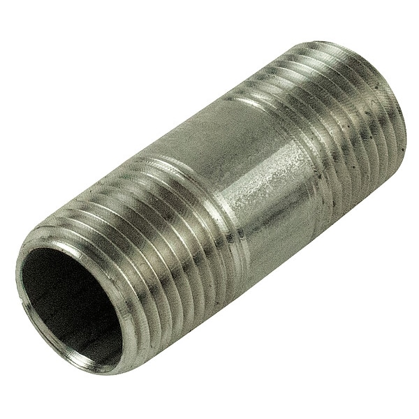 Nipple, Application Air, Natural Gas, Non-Potable Water, Propane, Steam, Fitting Compatibility Schedule 80, Gravity Flow No, Inside Diameter 1 5/16 in, Material Stainless Steel, Material Grade 316, Maximum Operating Pressure 250 psi, Maximum Operating Temperature 450 Degrees F, Metal Pipe Construction Seamless, Minimum Operating Temperature -60 Degrees F, Nominal Pipe Size 1 1/4 in, Outside Diameter 1 11/16 in, Overall Length 3 1/2 in, Schedule Schedule 80, Side A Connection Type Threaded