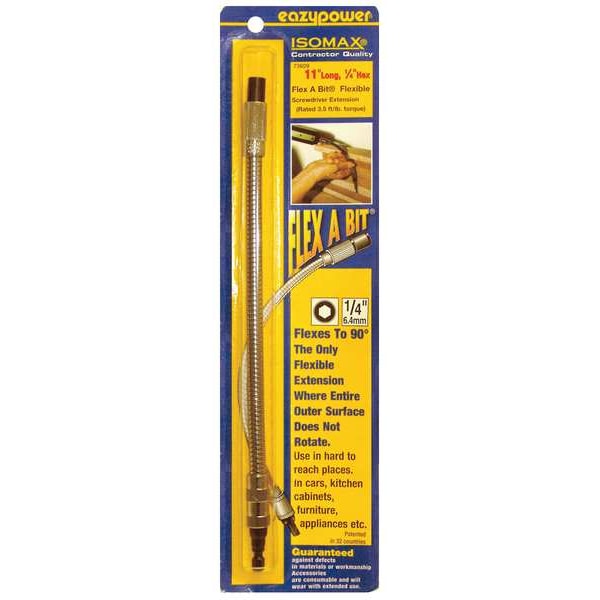 Flexible Extension, Application - Tools Power, Drive Size 1/4 in, Bit Holder Drive Type Hex, Hex Shank Size 1/4 in, Shank Style Hex, Overall Bit Length 11 in, Fastening Tool Material Steel, Bit Retainer Type Magnetic, Magnetic, Impact Rated Not Impact Rated, Number of Pieces 1, Includes 1 Flexible Extension