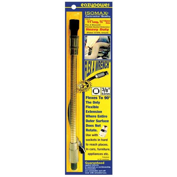 Flexible Extension, Application - Tools Power, Drive Size 3/8 in, Bit Holder Drive Type Square, Hex Shank Size 3/8 in, Shank Style Hex, Overall Bit Length 11 in, Fastening Tool Material Steel, Bit Retainer Type Magnetic, Nonmagnetic, Impact Rated Not Impact Rated, Number of Pieces 1, Includes 1 Flexible Extension