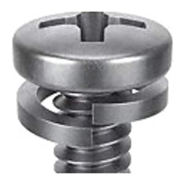 SEMS Screw, Head Type Pan, Material Stainless Steel, Finish Passivated, Drive Phillips, Thread Size #10-32, Fastener Length 1 in, Drive Size #2, Tensile Strength 70,000 psi, Dimensional Standards ASME B18.13, Type Machine Screw, Washer Outside Diameter 29/64 in, Washer Thickness 1/32 in, Maximum Head Width 3/8 in, Maximum Head Height 9/64 in, System of Measurement Inch, Thread Style Fully Threaded, Thread Type Fine, Package Quantity 10