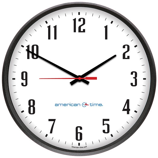 Clock, 12 In Diameter, Construction Black Powder-Coat Steel, Width (In.) (1)AA Battery