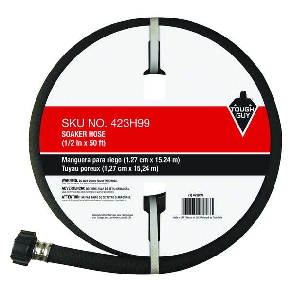 Item Water Hose, Features Non Clogging Porous Design, Provides Even Soaking Action Above or Below Ground, Garden Hose Type Soaker Hose, Hose Color Black, Hose Configuration Coupled Assembly, Hose Cover Material PVC, Hose Fitting A Material Plastic, Hose Fitting A Type FGHT, Hose Fitting B Material Plastic, Hose Fitting B Type MGHT, Hose Fittings Plastic FGHT x Plastic MGHT, Hose Inside Dia. 1/2 in, Hose Length 50 ft, Hose Tube Material PVC, Kink Resistant No, Temp. Range 90 Degrees F