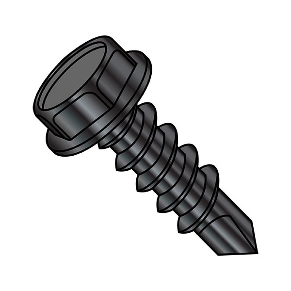 1/4-14X7/8 Unslt Hex Wash Ft Slf Drl Blk Zinc & Bake, 2000Pk