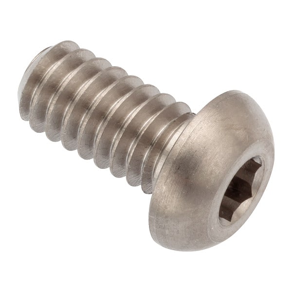 Machine Screw, Head Type Button, Material Stainless Steel, Finish Plain, Drive Internal Hex, Thread Size 1/4 In.-20, Fastener Length 1/2 in, Head Height 0.132 in, Drive Size Not Applicable, Tensile Strength 90,000 psi, Dimensional Standards RoHS Compliant, Pack Size Small, Minimum Thread Length Not Applicable, Type Machine Screw, Washer Outside Diameter Not Applicable, Maximum Head Width 7/16 in, Minimum Head Width Not Applicable, Maximum Head Height 1/8 in, Minimum Head Height Not Applicable