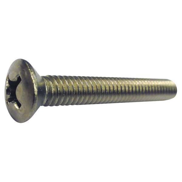 Machine Screw, Head Type Oval, Material Stainless Steel, Finish Plain, Drive Phillips, Thread Size 1/4 In.-20, Fastener Length 2 in, Head Width 0.477 in, Head Height 0.232 in, Drive Size #3, Tensile Strength 60,000 psi, Dimensional Standards ASME B18.6.3, Pack Size Small, Minimum Thread Length Not Applicable, Type Machine Screw, Washer Outside Diameter Not Applicable, Washer Thickness Not Applicable, Maximum Head Width 31/64 in, Minimum Head Width 7/16 in, Maximum Head Height 15/64 in