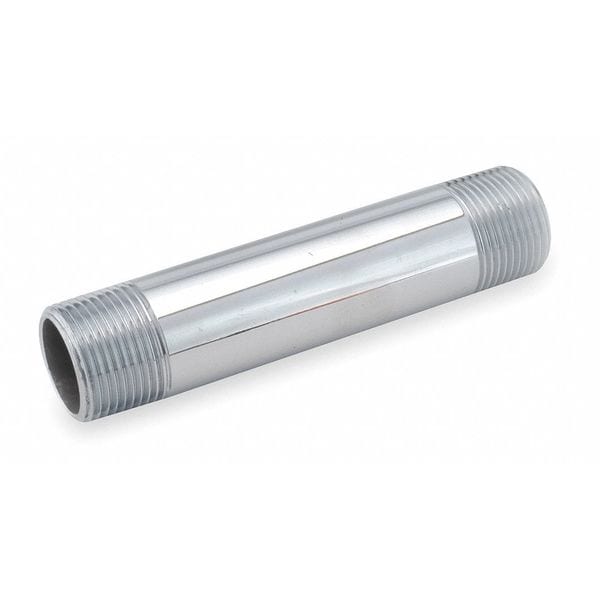 Nipple, Finish/Coating Chrome Plated, Material Brass, Maximum Operating Temperature 250 Degrees F, Minimum Operating Temperature -65 Degrees F, Nominal Pipe Size 1/4 in, Overall Length 8 in, Schedule Schedule 40, Side A Connection Type Threaded, Side A Gender Male, Side A Thread Type NPT, Side B Connection Type Threaded, Side B Gender Male, Side B Thread Type NPT, Standards ANSI B16.15, ANSI B16.24