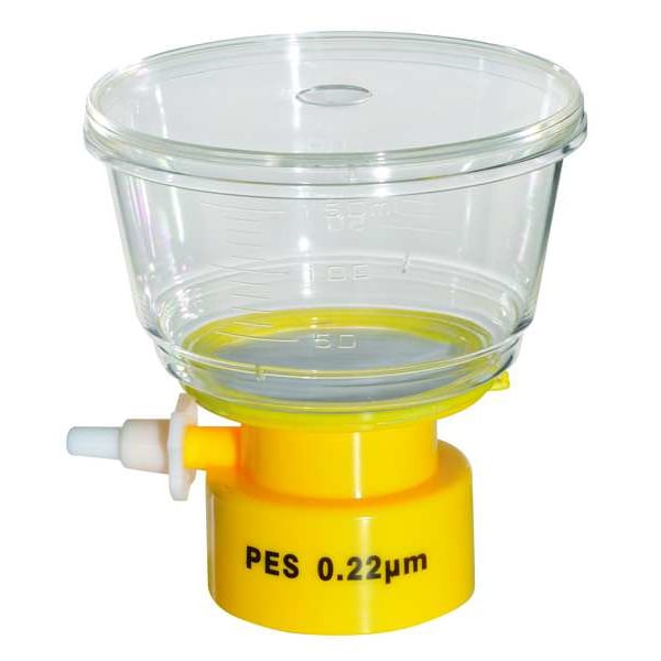 Bottle Top Filter, Product Type Bottle Top Filter, Diameter 50 mm, Material PES (Membrane), Includes Stopper No, Upper Capacity 150 mL, Maximum Particle Size 0.22 um, Sterile/Non-Sterile Sterile, Standards Not Applicable, USP Specification Not Applicable, Autoclavable No, Graduated Yes, Package Quantity 24