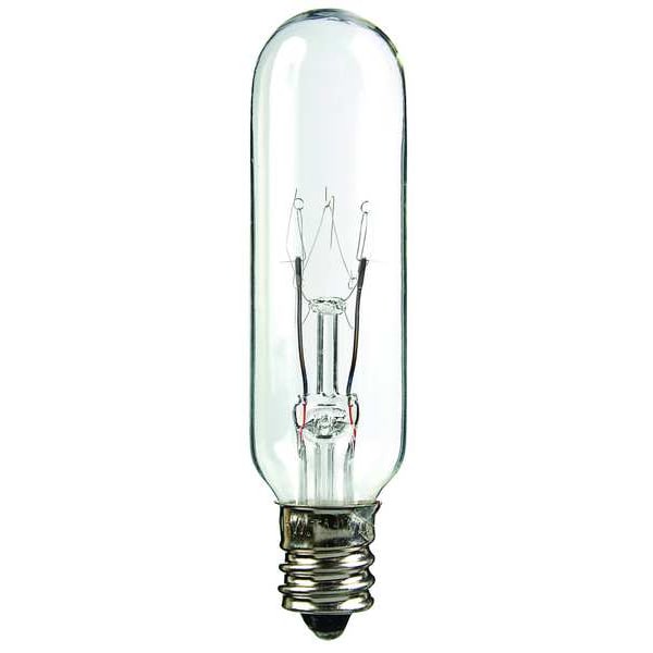 Incandescent Bulb, Bulb Base Type Candelabra Screw (E12), Bulb Housing Glass, Bulb Shape T6, Bulb Finish Clear, Color Rendering Index Not Applicable, Color Temperature 2800K, Lumens 102 lm, Light Technology Incandescent, Shatter-Resistant No, Trade Number 15T6-145V, Voltage 145V AC, Watts 15 W, Bulb Beam Angle Not Applicable, Rated Life 2,000 hr, Dimmable Yes, For Enclosed Fixtures No, Three-Way No, Light Color White, Indoor/Outdoor Usage Indoor Only, Overall Length 3 in