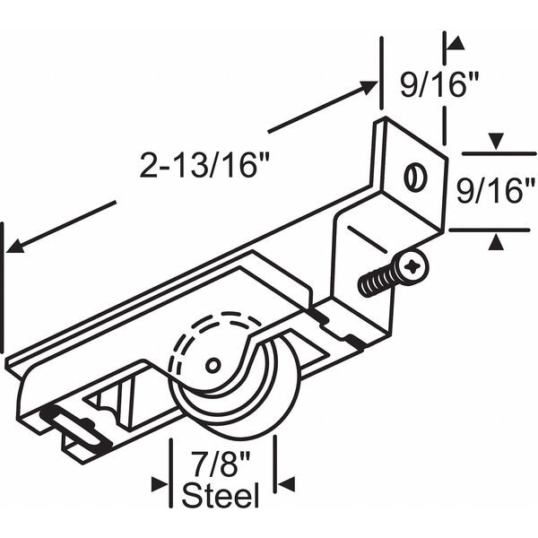 Roller Assembly, Sliding, Zinc, Gray, Unfinished Finish, Length (In.) 2-13/16, Height (In.) 1-3/4, Width (In.) 9/16, Outside Dia. 1-1/4, Max. Wheel Dia. (In.) 1-1/4, Roller Width/Dia. (In.) 1-1/4, Door Mounting, Steel Bearings, Zinc, Hardware Included, Requires Hardware, For Use With Patio Door