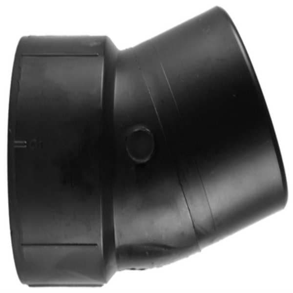 22.5 Degrees Street Elbow, ABS, Schedule 40, For Pipe Schedule Schedule 40, 3 in, Male, Spigot, 3 1/2 in, 3 in, Female, Socket, 3 15/16 in, Includes Seal Seal Not Included, For Pipe Outside Diameter 3 1/2 in, 3 1/8 in Overall Length, Gravity Flow Maximum Operating Pressure, -20 Degrees to 140 Degrees F