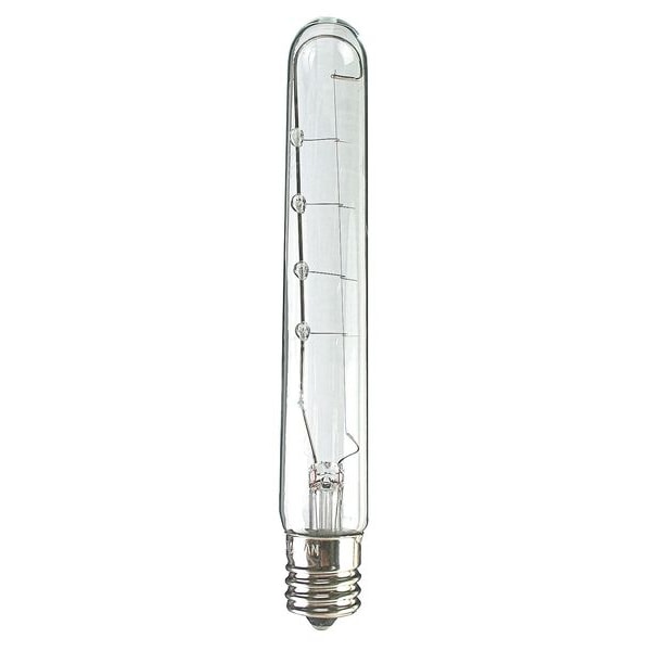 Incandescent Bulb, Bulb Base Type Intermediate Screw (E17), Bulb Housing Glass, Bulb Shape T6, Bulb Finish Clear, Color Rendering Index Not Applicable, Color Temperature 2800K, Lumens 244 lm, Light Technology Incandescent, Shatter-Resistant No, Trade Number 25T6-1/2, Voltage 130V AC, Watts 25 W, Bulb Beam Angle Not Applicable, Rated Life 1,000 hr, Dimmable Yes, For Enclosed Fixtures No, Three-Way No, Light Color White, Indoor/Outdoor Usage Indoor Only, Overall Length 5 1/2 in