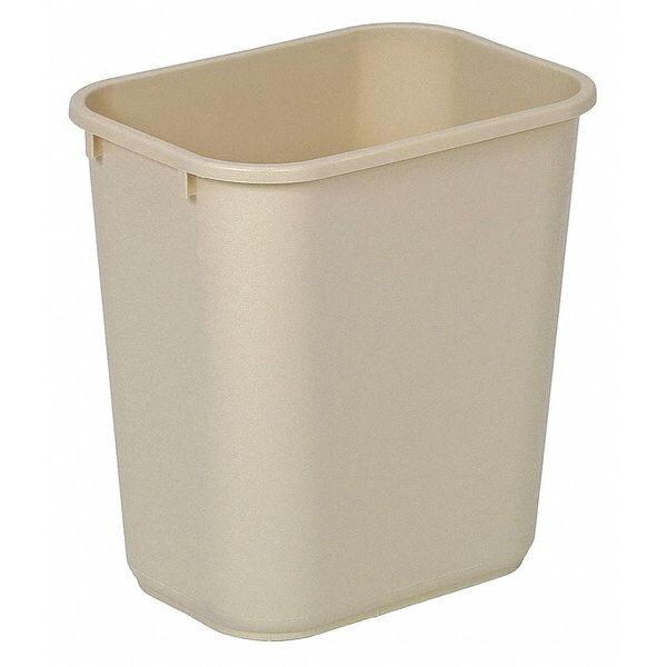 Wastebasket, Rectangular, Open, 3 1/2 gal, Beige, Height 8 in, Width/Diameter 12 in, Depth 11 1/2 in, Plastic, Plastic, Polished, Indoor, Stationary, No Lid, None, None, Free-Standing