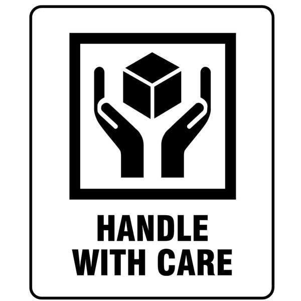 Instructional Handling Label, Language English, Primary Label Subject Care Instruction, Message Header Handle with Care, Message Handle with Care, Label Width 3 in, Label Height 4 in, Material Paper, Background Color White, Labels per Roll 100, Package Quantity 100