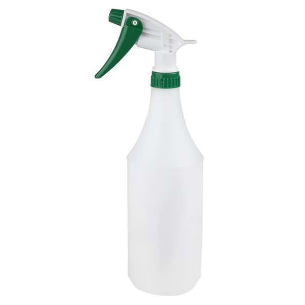 Trigger Spray Bottle, Dispensing Type Mist, Stream, 32 oz, White, Sprayer Color Green, Bottle Material HDPE, Dip Tube Length 9 1/2 in, Seal Material Polypropylene, Imprinting No Imprinting, Graduation Markings Yes, Graduation Increments 1 fl oz, Overall Height 12 1/2 in, Closure Size 28/400, Features Adjustable Nozzle, Closure Diamenter 28 mm, Closure Thread Style 400, Package Quantity 3