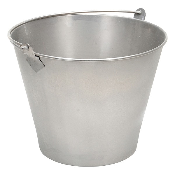 Bucket, Bucket/Pail Material Stainless Steel, Color Silver, Handle Material Stainless Steel, Head/Closure Type Open Head, Includes Lid Lid Not Included, Maximum Operating Temperature Not Applicable, Overall Diameter 12 3/4 in, Overall Height 10 in, Overall Width Not Applicable, Shape Round Tapered, Standards OSHA Regulations, Volume Capacity 3.3 gal, FDA Approved Not FDA Compliant, NSF Standards Not Rated, UN Standards None, Overall Length Not Applicable, Autoclaveable Autoclavable Material