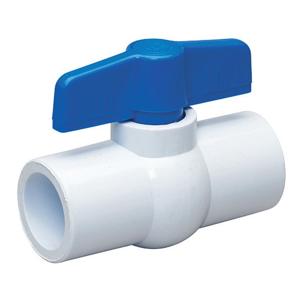 Manual Two-Way Ball Valve, Body Material PVC, For Media Water, Valve Construction One-Piece, Nominal Valve Size 3/4 in, Valve Body Style Straight, 3-A Standard Compliance Not Rated, Average Surface Roughness (Ra) Not Applicable, Maximum Pressure - Operating 150 psi, Maximum Pressure - Steam Not Rated, Maximum Pressure - Combustible Gas Not Rated, Vacuum Service Rating Not Rated, Ball Material PVC, Ball Port Style Full Port, Handle - Locking Non-Locking, Handle Type Tee