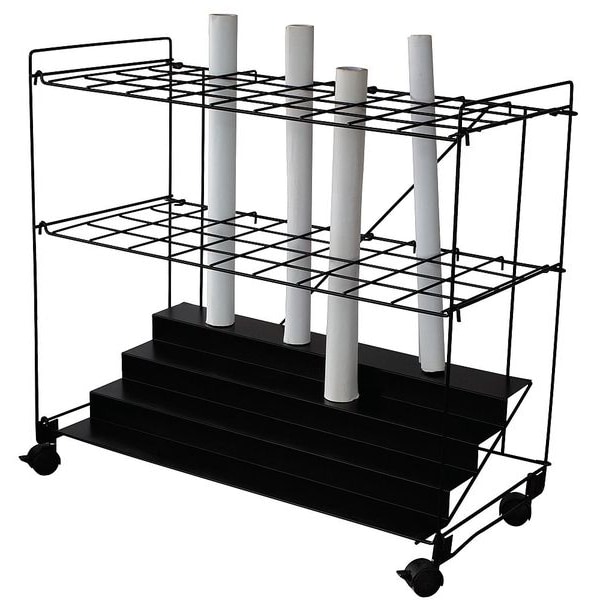 Roll File, Number of Compartments 36, For Tube Diameter 3 1/2 in, Color Black, Material Wire, Overall Depth 15 in, Overall Width 35 3/8 in, Overall Height 32 3/8 in, Mobility Mobile, Assembly Unassembled, Caster Diameter 2 in, Caster Type Swivel, Compartment Height Not Applicable, Compartment Width 3 1/2 in, Finish Powder Coated, Includes Multi-Height Base Insert, Number of Casters 4, Weight Capacity 66.14 lb, Includes Assembly Tools No, Compartment Depth 3 1/2 in
