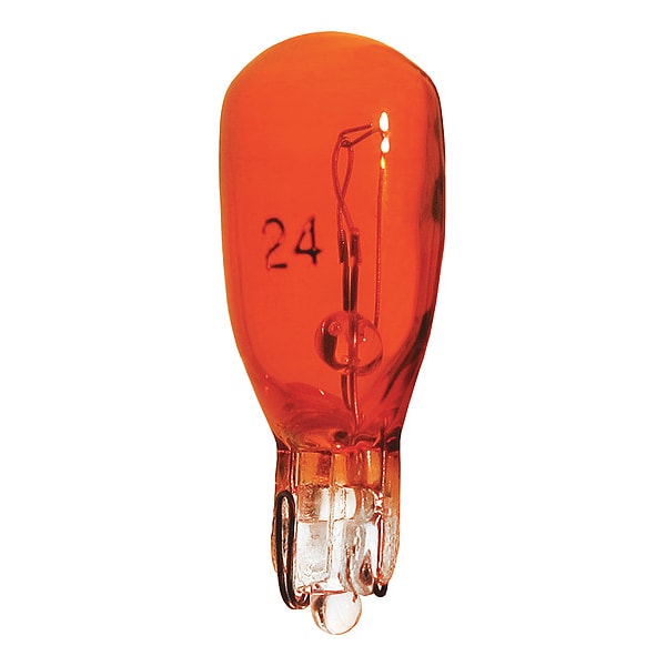 Incandescent Bulb, Bulb Base Type Glass Wedge (W2x4.6d), Bulb Housing Glass, Bulb Shape T2-3/4, Bulb Finish Amber, Color Rendering Index 100, Color Temperature 1750K, Lumens 19 lm, Light Technology Incandescent, Shatter-Resistant No, Trade Number 24NA, Voltage 14V AC, Watts 3.36 W, Bulb Beam Angle Not Applicable, Rated Life 1,500 hr, Dimmable No, For Enclosed Fixtures No, Three-Way No, Light Color Amber, Rough Service No, Indoor/Outdoor Usage Indoor Only, Overall Length 55/64 in
