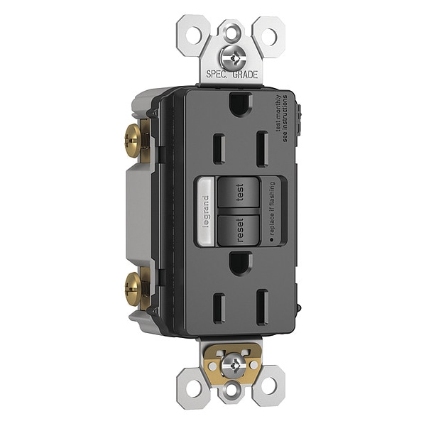 Power Inlet, Current Rating 15 A, GFCI Yes, Housing Color Black, Housing Material Thermoplastic, NEMA Receptacle Configuration 5-15R, Number of Gangs 1, Number of Poles 2, Number of Wires 3, Receptacle Type Decorator Duplex, Resistance Properties Impact Resistant, Tamper Resistant, Standards cULus Listed, FSUL, UL Listed, Voltage Rating 125V AC, Wire Connection Type Screw Terminals, Wiring Method Back, Side, Reset Type Automatic, UL 94 Flammability Rating V-2