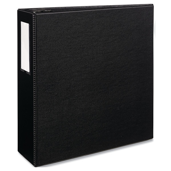 Color Family - Binders Black, 3-Ring Binder, Ring Type - Binders D-Ring, Ring Size - Binders 4 in, Cover Type - Binders Plain, Sheet Size - Binders 8-1/2 in x 11 in, Durability - Binders Standard, Sheet Capacity - Binders 780, Features - Binders Label Holder, Rings Mounted on Back Cover, Basic Material - Binders Vinyl, Specific Material Vinyl, Color Black, Number of Rings 3, Includes Label Holder, Pockets, Item Ring Binder
