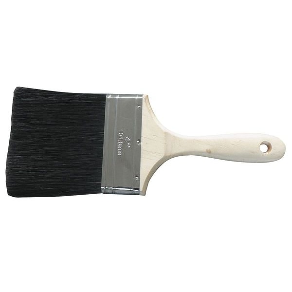 Paint Brush, Brush Style Flat Sash, Filament Type Mixed, Filament Material China Hair, Brush Size 4 in, Bristle Thickness 7/8 in, Bristle Length 3 11/16 in, Bristle Stiffness Soft, Handle Type Flat, Basic Handle Material Wood, For Paint or Coating Type All Paints and Coatings, Surface Material Concrete, Metal, Wood, For Paint Base Type Oil, Water, Surface Texture Rough, Smooth, Application Walls, Bristle Color Black, Bristle Width 4 in, Brush Length 3 11/16 in, Ferrule Material Stainless Steel