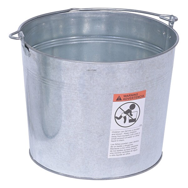 Bucket, Bucket/Pail Material Steel, Color Silver, Handle Material Steel, Head/Closure Type Open Head, Includes Lid Lid Not Included, Maximum Operating Temperature Not Applicable, Overall Diameter 14 1/4 in, Overall Height 11 in, Overall Width Not Applicable, Shape Round Tapered, Standards OSHA Regulations, Volume Capacity 5 gal, FDA Approved Not FDA Compliant, NSF Standards Not Rated, UN Standards None, Overall Length Not Applicable, Autoclaveable Not Autoclavable Material, Finish Galvanized