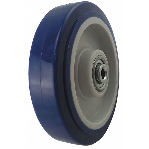 Caster Wheel, 360 lb Load Rating, 300 to 999 lb Load Rating Range, 5 in Wheel Dia., 1 1/4 in Wheel Width, Polyurethane Wheel/Tread Material, Firm, 98 Shore A, Precision Ball, Standard Tread Shape, 3/8 in For Axle Size, Not Included Includes Spanner Bushing, Plastic Wheel Core Material, No Non-Marking, 1 5/8 in Hub Length