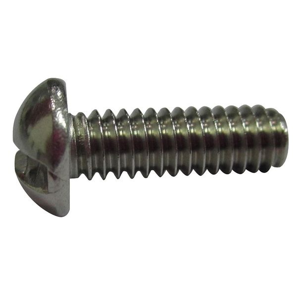 Machine Screw, Head Type Round, Material Stainless Steel, Finish Plain, Drive Slotted, Thread Size #8-32, Fastener Length 3/8 in, Head Width 0.312 in, Head Height 0.12 in, Tensile Strength 60,000 psi, Dimensional Standards ASME B18.6.3, Pack Size Small, Minimum Thread Length Not Applicable, Type Machine Screw, Washer Outside Diameter Not Applicable, Washer Thickness Not Applicable, Maximum Head Width 5/16 in, Minimum Head Width 9/32 in, Maximum Head Height 1/8 in, Minimum Head Height 7/64 in