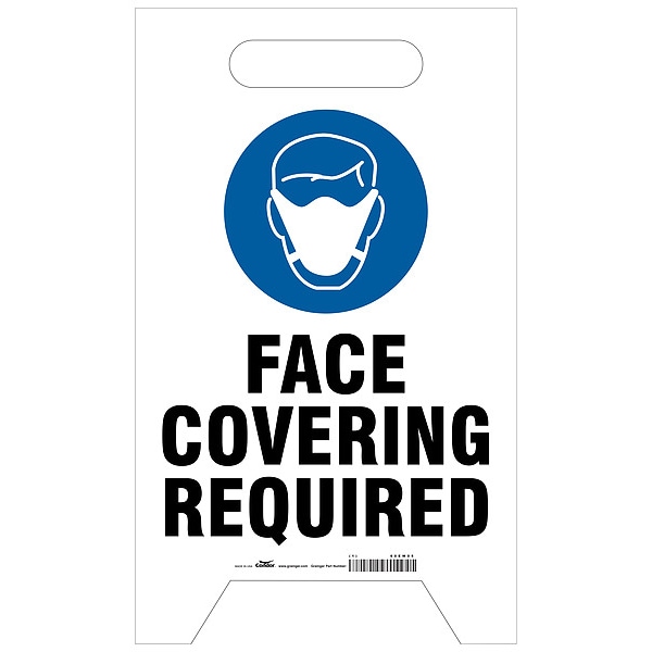 A-Frame Standing Floor Sign, Sign Subject Matter Social Distancing, Height 19 in, Width 12 in, Sign Material Plastic, Sign Mounting Style Free-Standing Floor, Header No Header, Legend Face Covering Required, Printed Language English
