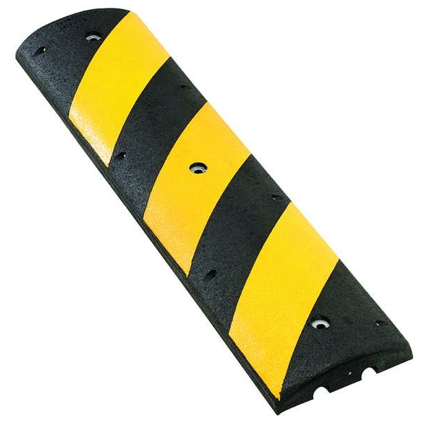 Speed Bump, Product Type Speed Bump, Height 2 1/8 in, Length 72 in, Installation Method Bolts, Spikes, Installation Type Permanent, Width 12 in, Color Black, Yellow, Installation Surface Asphalt, Concrete, Material Rubber, Number of Cable Channels 2, Number of Installation Holes 4, Traffic Speed Rating 1 to 5 mph, Cable Channel Height 2 in, Cable Channel Width 1 1/4 in, Includes Cable Channel Yes, Includes Installation Hardware No, Maximum Weight Capacity 40,000 lb, Tensile Strength 350 psi