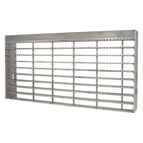 Aluminum Stair Tread, Aluminum, 6061, Stair Tread, 1 1/4 in Bearing Bar Height, 0.188 in Bearing Bar Thickness, 2 1/2 in End Plate Height, Top Surface Smooth, Nosing Surface Grooved, Bearing Bar Spacing 1 1/4 in, Number of Bearing Bars 7, Tread Depth 8 9/16 in, Mounting Hole Spacing 4 1/2 in, Includes Mounting Hardware Mounting Hardware Not Included, 7/16 in Mounting Hole Diameter, 1 7/16 in Mounting Hole Length, 7/16 in Mounting Hole Width, Number of Mounting Holes 4
