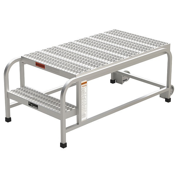 Aluminum Mobile Work Platform, 2 Steps, No Handrails, 42"D Platform, Serrated Tread