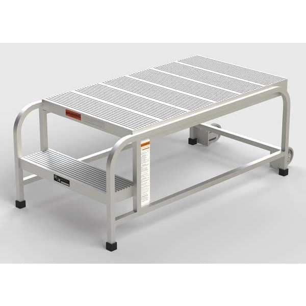 Aluminum Mobile Work Platform, 2 Steps, No Handrails, 42"D Platform, Solid Ribbed Tread