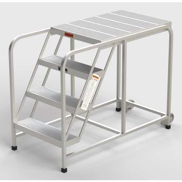 Aluminum Mobile Work Platform, 4 Steps, No Handrails, 36"D Platform, Solid Ribbed Tread