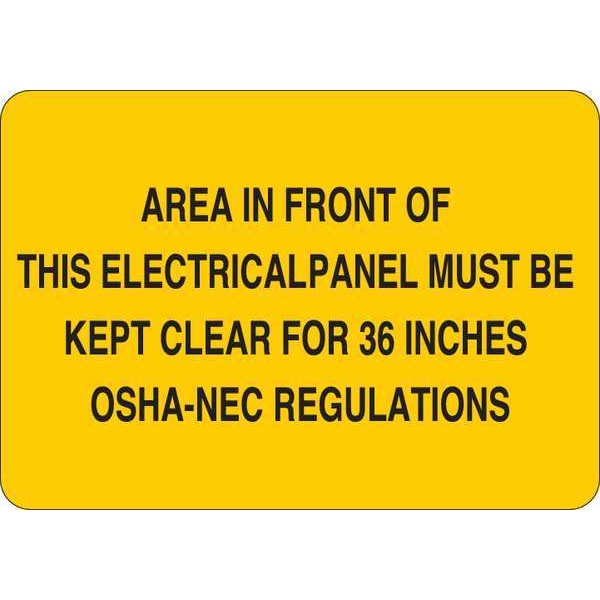 Area In Front of This Electrical Panel Must Be Kept Clear, 10 in H x 14 in W, Plastic, 35FZ14