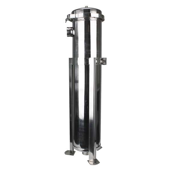 Bag Filter Housing, Connection Size 2 in, Overall Height 41 1/4 in, Overall Diameter 11 3/4 in, Cover Type Band Clamp, Outlet Position Bottom, Connection Type NPT, Bag Size 2, Basket Material 304 Stainless Steel, Compatible Mfr. Model Number Size # 2 Bag, Flow Rate 135 gpm, Housing Material 304 Stainless Steel, Includes Adjustable Support Legs, Maximum Pressure 125 psi, Maximum Temperature 300 Degrees F, Overall Length Not Applicable, Seal Material EPDM, Series E