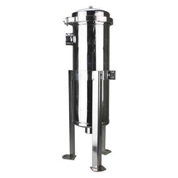 Bag Filter Housing, Connection Size 2 in, Overall Height 27 5/8 in, Overall Diameter 8 5/8 in, Cover Type Band Clamp, Outlet Position Bottom, Connection Type NPT, Bag Size 1, Basket Material 304 Stainless Steel, Compatible Mfr. Model Number Size # 1 Bag, Flow Rate 90 gpm, Housing Material 304 Stainless Steel, Includes Adjustable Legs, Maximum Pressure 125 psi, Maximum Temperature 300 Degrees F, Seal Material EPDM