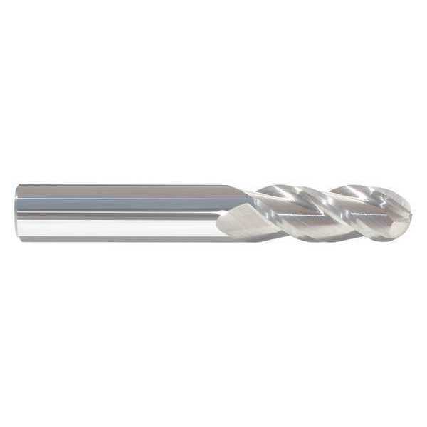 Ball End Mill, 0.1875 in Milling Dia., Carbide, Uncoated, Non-Coolant Through
