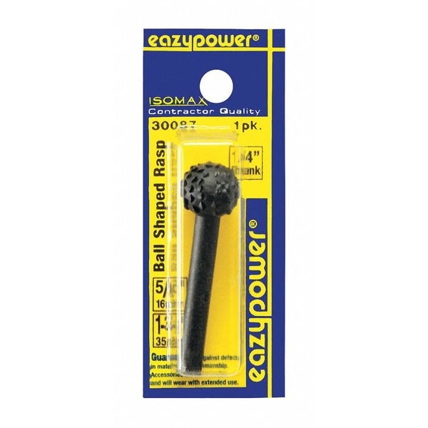 Rotary Rasp, Rotary Tool Accessory Type Rotary Rasp, Bit Material Alloy Steel, Shape Ball, Max. Speed 2,500 RPM, Shank Diameter 5/8 in, Mount Type Mounted, Overall Length 1 3/8 in, Burr Diameter 5/8 in, Head Length 3/4 in, Head Width 5/8 in, Material Application Bronze, Iron, Mild Steel, Plastic, Soft Metal, Wood