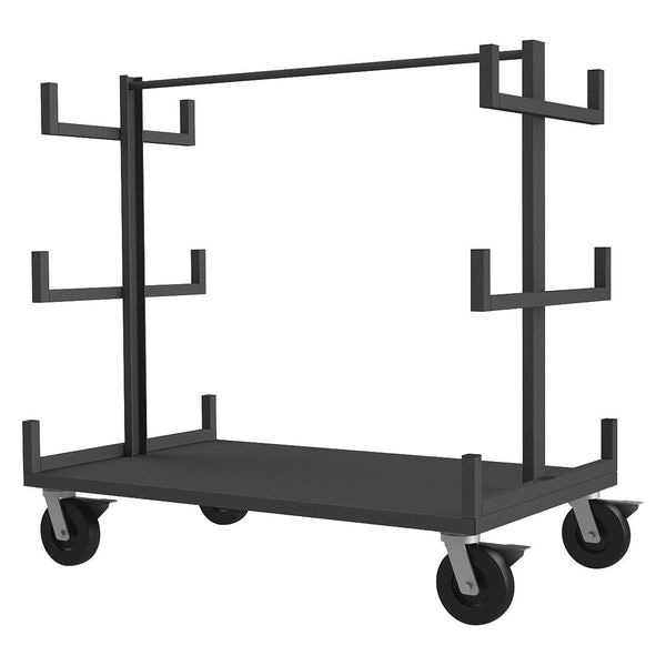 Mobile Bar & Pipe Rack, Load Capacity 3,600 lb, Deck Length 60 in, Deck Width 36 in, Deck Height 11 1/8 in, Deck Construction Solid, Deck Material Steel, Deck Finish/Coating Powder Coated, Deck Gauge 12 ga, Number of Cradles/Racks 6, Number of Levels 3, Frame Material Steel, Frame Finish/Coating Powder Coated