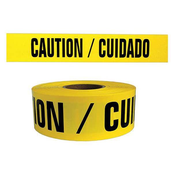 Barricade Tape, Caution/Cuidado, Yellow, 3 in Wide x 1,000 ft Length, Polyethylene, 4 mil