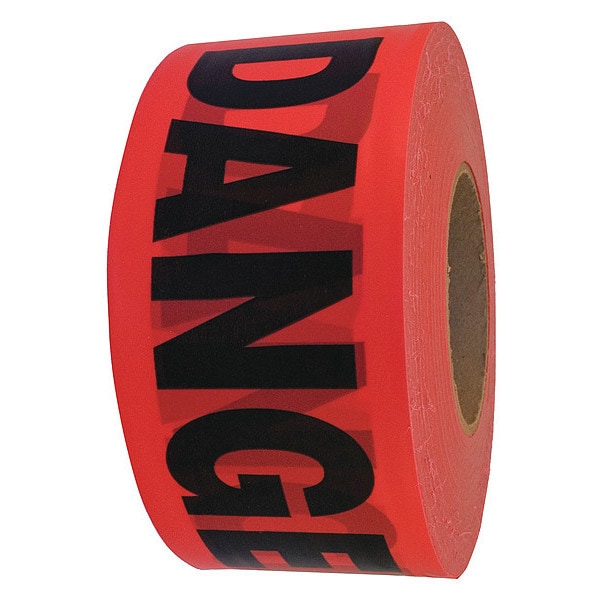 Barricade Tape, Danger, Red, 3 in Wide x 1,000 ft Length, Polyethylene, 3 mil