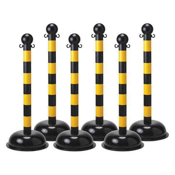 Barrier Post, Polyethylene, 41 in Height, Black/Yellow 6 PK