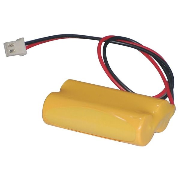 Battery, Battery Chemistry Nickel Cadmium, Battery Capacity 300 mAh, Compatible with Series 6CGL5, Recharge Time 24 hr, Voltage 2.4 V, JST Terminal Type, Plug AMP Terminal Connection, Rated Life 4 yr, Yellow Housing Color, Compatible Grainger Part Number 6CGL5, Compatible Mfr. Model Number 6CGL5, Maximum Operating Temperature 113 Degrees F, Minimum Operating Temperature 32 Degrees F, 6 3/10 in Lead Length, Overall Depth 1/2 in, Overall Height 2 in, Overall Width 1 1/4 in